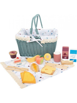 Zabawkowy zestaw wykonany jest z solidnego drewna i wykończony neutralną bielą oraz naturalnym drewnem, co nadaje mu nowoczesny wygląd. Dzięki wyjmowanej wyściółce, kosz jest łatwy w utrzymaniu czystości. To idealny zestaw do realistycznej zabawy w kuchnię, jedzenie i pikniki, który będzie pasował do wnętrz przedszkoli oraz pokoi dziecięcych.