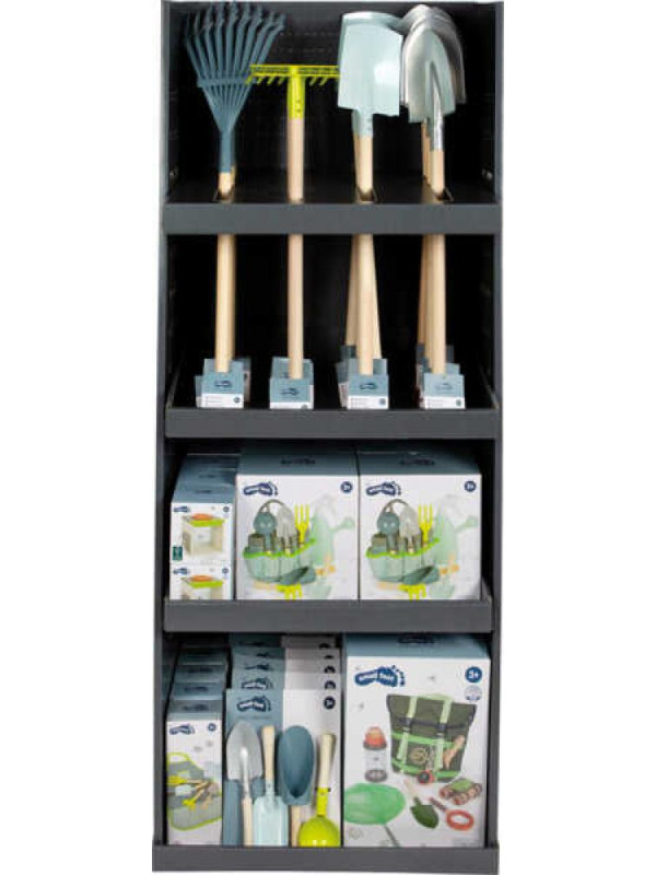 Zabawki ogrodowe, zestaw z półką - 40 różnych zabawek