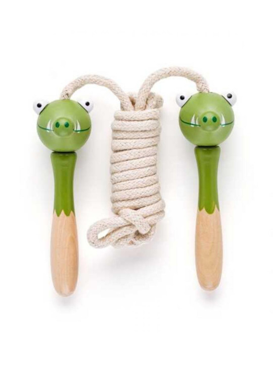 Każda skakanka posiada drewniane rączki o długości 12 cm, stylizowane na wesołe zwierzątka. W ofercie dostępne są cztery warianty: