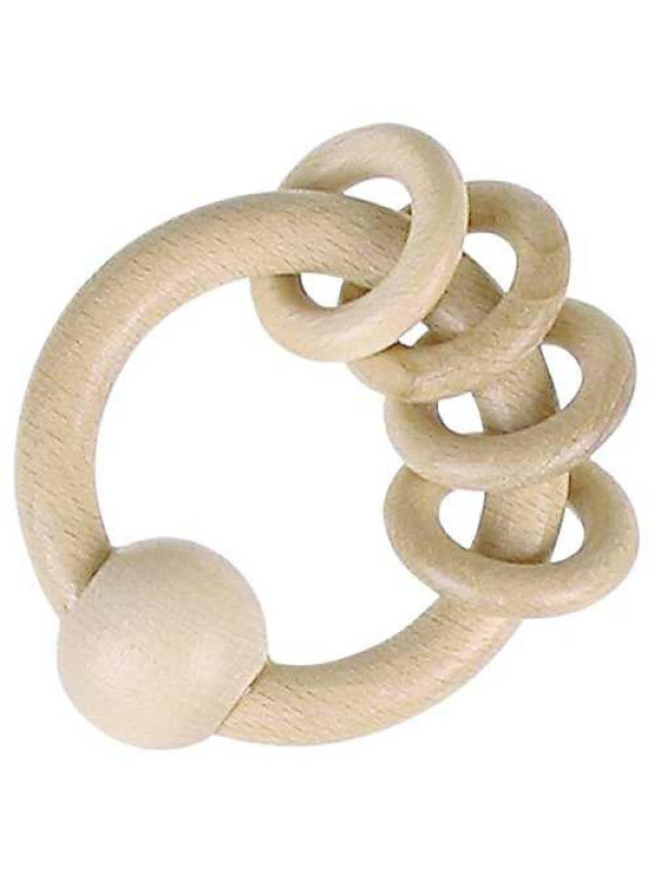 Gryzak, pierścień sensoryczny, z czterema kółkami - naturalne drewno