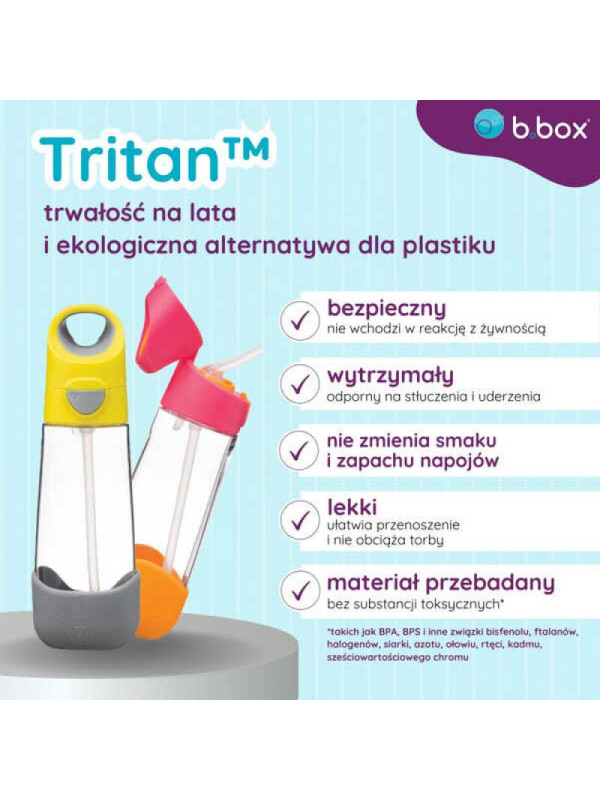 Bez względu na wiek, dzieci powinny mieć łatwy dostęp do picia w każdym miejscu. Zwłaszcza gdy na dworze robi się ciepło, a dzieci spędzają dużo czasu na świeżym powietrzu, bawiąc się, grając w piłkę, jeżdżąc na rowerze, rolkach czy wyruszając na krótsze lub dłuższe wyprawy z rodzicami. Nawodnienie jest kluczowe podczas wycieczek, podróży, a także w przedszkolu i szkole. Zamiast kupować pod wpływem chwili wysoko słodzone napoje, lepiej zabrać z domu wodę w bidonie. Idealnym wyborem będzie butelka wykonana z bezpiecznego materiału, jakim jest tritan. Lekki, bardzo wytrzymały, odporny na zmiany temperatury, nie wpływa na smak ani zapach napoju. Doskonale sprawdzi się w szkole, przedszkolu czy na wycieczce. Przykładem może być bidon zaprojektowany przez markę b.box, która od lat dostarcza swoim klientom praktyczne, bezpieczne, estetyczne i funkcjonalne akcesoria. butelka z tritanu, bidon dla dziecka, bidon z tritanu
