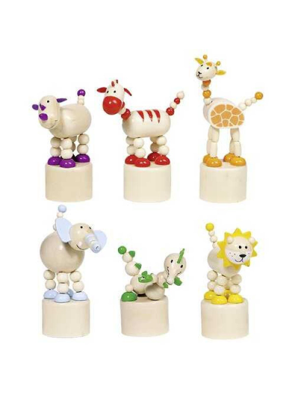 Animals, press 'n shake figures, Africa designs, wood - set of 12