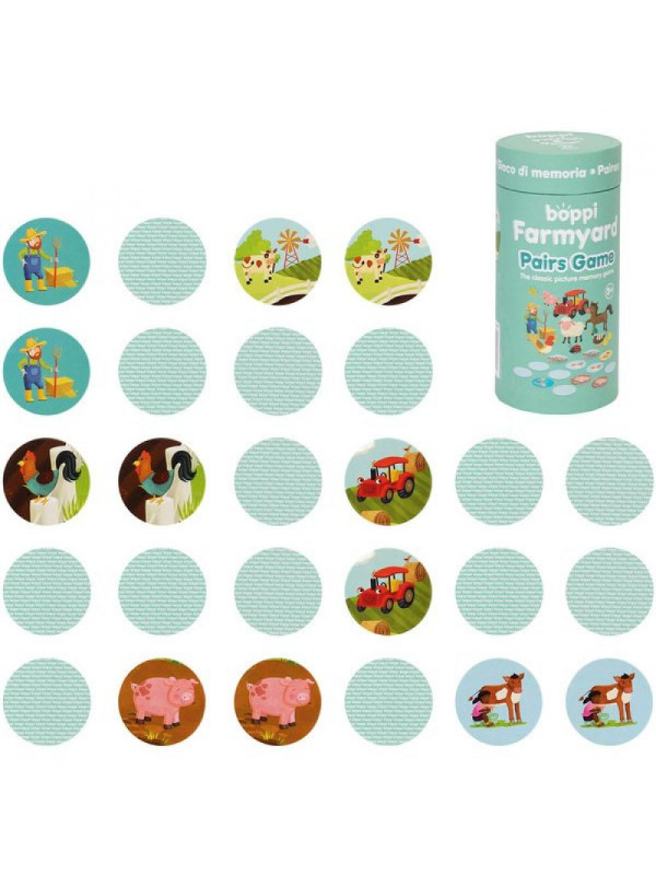 Układanka w Pary Memo Farma od marki BOPPI to idealna propozycja na edukacyjną zabawę, która dostarczy dzieciom mnóstwo frajdy jednocześnie wspierając ich rozwój. Doskonale sprawdzi się jako prezent na każdą okazję.