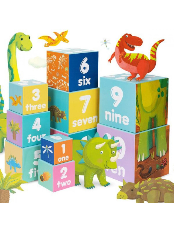 • Każdy klocek posiada unikalne ilustracje dinozaurów, litery i cyfry