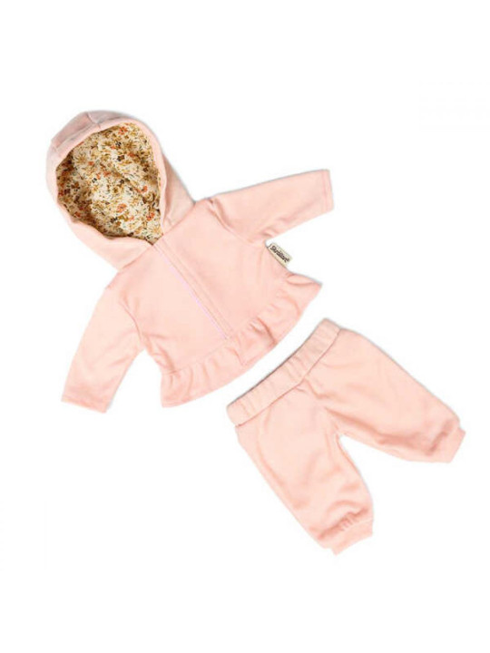 To zestawienie jest oczywistym wyborem dla wszystkich lalek na przytulne wieczory w domu! Dres jest miękki i wygodny, w pięknym różowym kolorze z falbanami. Zestaw ubranek dla lalek zawiera bluzę z kapturem z zapięciem na rzep i spodnie z miękkiego materiału dżersejowego.