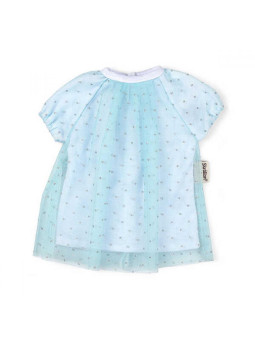 Idź na przyjęcie z twoją lalką! Ta niebieska sukienka tiulowa z srebrnym brokatem i zapięciem na rzep doskonale nadaje się na uroczyste okazje. Lśniący niebieski materiał sprawia, że lalka wygląda naprawdę pięknie na przyjęciu. To szybko stanie się ulubionym ubraniem w garderobie!