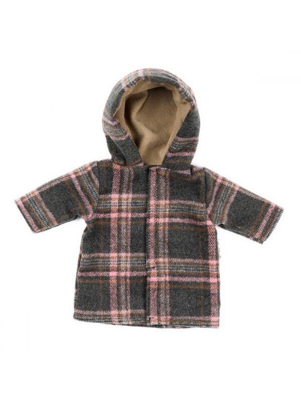 Cudowny, mięciutki płaszczyk w brązowym kolorze w różową kratkę oraz zapięciem na rzep. Nie znajdziesz piękniejszego płaszczyka dla lalki!
