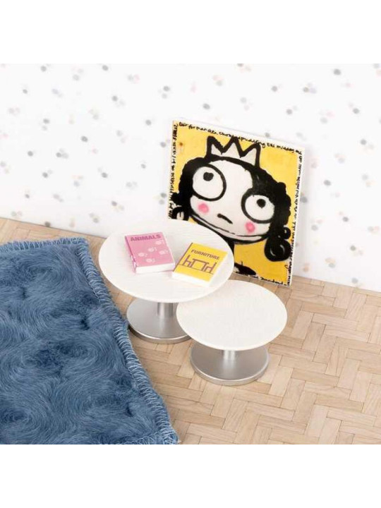 Rozsiądź się wygodnie na sofie z filiżanką herbaty i posłuchaj pięknej muzyki. Ten zestaw do salonu Lundby obejmuje sofę, dwa stoliki kawowe, dywan i obraz Lisy Rinnevuo. Sofa ma pluszową tapicerkę, która zapewnia bardziej luksusowe wykończenie, a stoliki przypominają drewno i są dostępne w dwóch różnych rozmiarach. Dywan podkreśla przytulny charakter pokoju, a piękny obraz dodaje magicznego wykończenia temu stylowemu zestawowi Lundby.