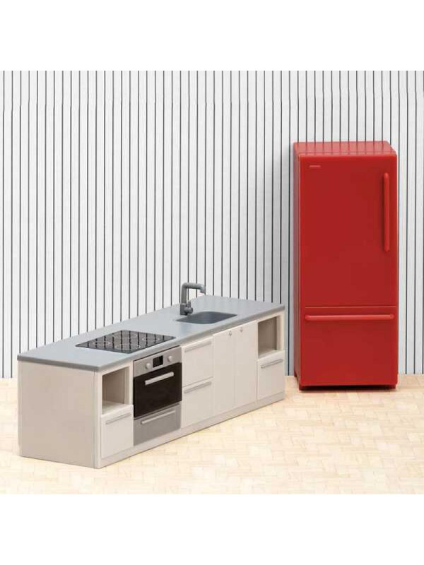Kuchnia jest często nazywana sercem domu, i z pewnością tak jest w tym domku dla lalek Lundby. W tym zestawie kuchennym Twoje lalki mają wszystko, czego potrzebują, aby cieszyć się pysznymi wspólnymi posiłkami. Wyspa kuchenna jest wyposażona w płytę grzejną, piekarnik, zlewozmywak i umywalkę oraz dwie otwarte przegródki do przechowywania. Lodówka się otwiera.