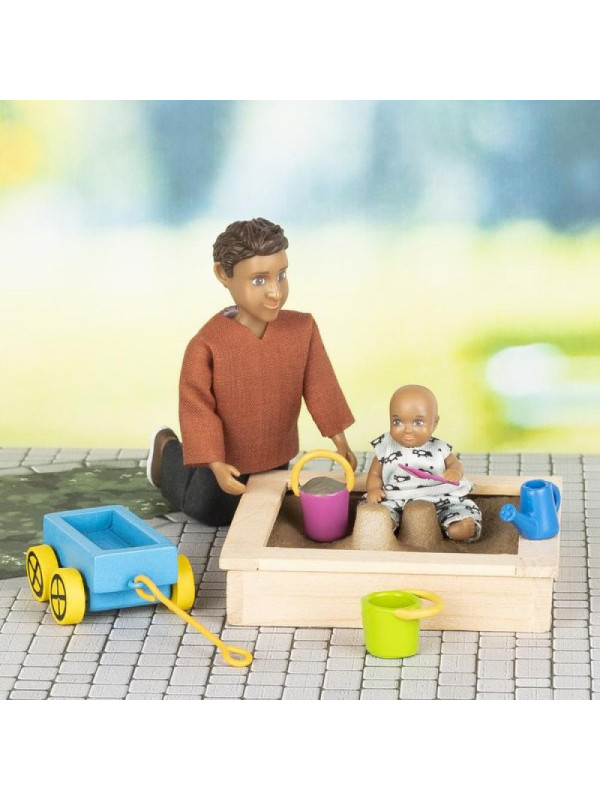 Zestaw z piaskownicą Lundby to zabawny i realistyczny dodatek do popularnego domku dla lalek Lundby. Pozwól dzieciom Lundby cieszyć się zabawą w piaskownicy. W zestawie, oprócz piaskownicy znajduje się konewka, dwa wiaderka i łopatka, a także zabawkowy wózek na kółkach.