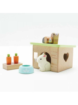 Dodaj trochę zwierzątek do domku lalek twoich maluchów dzięki temu uroczemu zestawowi z Króliczkiem i Świnkami Morskimi. Ta zabawka bez plastiku wykonana jest z naturalnego drewna certyfikowanego przez FSC®, pomalowana bezpiecznymi dla dzieci kolorami i składa się z 5 elementów do zabawy - króliczek, para świnek morskich, miska do karmienia, klatka i miejsce na marchewkę do chrupania. Słodki dodatek do kolekcji małego świata do zabawy.
