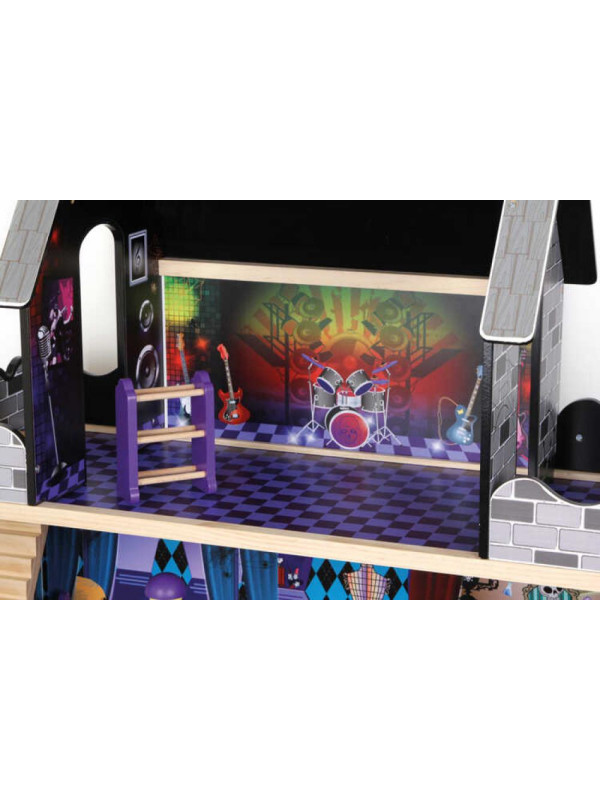 Eerily beautiful doll's house with colourful motifs on the walls gives the player comforting goosebumps! All standard size fashion dolls find their new home in this 3-storey house. 8 pieces of furniture from lacquered wood are already included but there is room for further furniture as well.