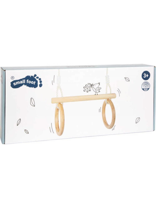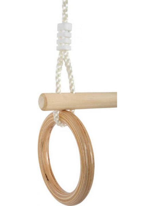 Swinging, doing gymnastics, or hanging upside down? That's all a breeze with this 2-in-1 combination of a trapeze swing and gymnastic rings made of robust wood! And here's a bonus for young acrobats: thanks to the trapeze bar, the distance between the rings remains constant, making it easier for beginners to swing with the rings. Comes with a weather-resistant, length-adjustable rope!