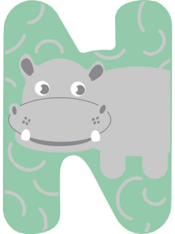 - Wooden letter N with a cute hippopotamus motif