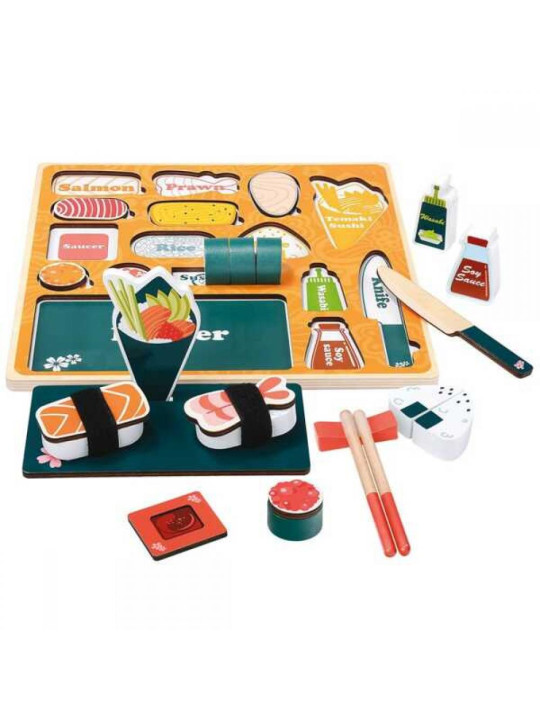Pozwól dzieciom zanurzyć się w fascynujący świat kulinarnych przygód dzięki drewnianemu zestawowi Sushi. Ta kreatywna zabawka edukacyjna jest idealna dla najmłodszych kucharzy, którzy chcą doskonalić swoje umiejętności manualne i rozwijać wyobraźnię, tworząc własne kompozycje sushi.