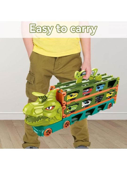 Ciężarówka dinozaur pomaga rozwijać wyobraźnię oraz ćwiczyć umiejętności motoryczne i koncentrację. Dzięki angażującej zabawie dzieci mogą spędzać czas, poznając zasady grawitacji i dynamiki podczas ścigania się autkami.