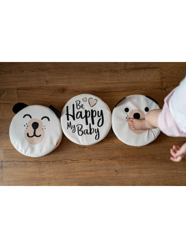 Poduszki białe ekoskóra NAPISY 1 szt. 6 cm AKSON   Poduszki o grubości 6 cm to ważny element wyposażenia każdego animatora, przedszkola i szkoły. Idealnie sprawdzi się w każdym dziecięcym pokoju.   Poduszki mają szerokie zastosowanie w pracy z grupą. Idealnie sprawdzą się we wszelkiego rodzaju  zajęciach edukacyjnych i integracyjnych. To doskonałe narzędzie do gier zespołowych w pomieszczeniach jak i w plenerze, umożliwia czerpanie radości płynącej z ruchu i przebywania w grupie. Poduszki wypełnione są wkładem z gąbki, co sprawia że są wygodne a zarazem lekkie i bezpieczne, dzięki czemu mogą nawet spełnić rolę dysku do rzucania!  Materiał: barwny, wytrzymały (EKO SKÓRA) Produkt, dzięki swojej strukturze jest bardzo łatwy do dezynfekcji!   Średnica: 30 cm Wysokość: 6 cm    Wzory do wyboru: napis LITLLE PRINCESS - korona napis BIG BOY - muszka napis BE HAPPY MY BABY - serduszka     Produkt zalecany dla dzieci powyżej 3 miesiąca życia Produkt polski.  Centrum Akson jest producentem chust animacyjnych akson, a także woreczków i szarf gimnastycznych, tuneli animacyjnych, kolorowych piłeczek do suchych basenów i zabaw z chustą i wielu innych akcesoriów edukacyjnych i animacyjnych. Od lat jest też propagatorem Pedagogiki Zabawy i Pedagogiki Cyrku w Polsce i poza granicami kraju. Kupuj najlepsze! Kupuj u źródła!   Cena za sztukę.
