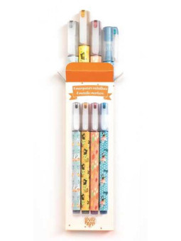 Przedstawiamy Metaliczne Markery ELODIE, zestaw czterech markerów o unikalnym metalicznym połysku, który nadaje każdemu rysunkowi wyjątkowego charakteru. Te flamastry dostępne są w czterech klasycznych kolorach, które doskonale sprawdzają się w różnorodnych projektach artystycznych.