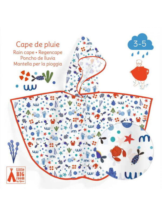 Pelerynka OCEAN zdobiona jest kolorowymi grafikami przedstawiającymi zwierzęta morskie i rośliny, co z pewnością rozjaśni każdy pochmurny dzień. Kaptur oraz praktyczne zatrzaski pod ramionami i pod szyją sprawiają, że jest ona nie tylko funkcjonalna, ale także estetyczna.