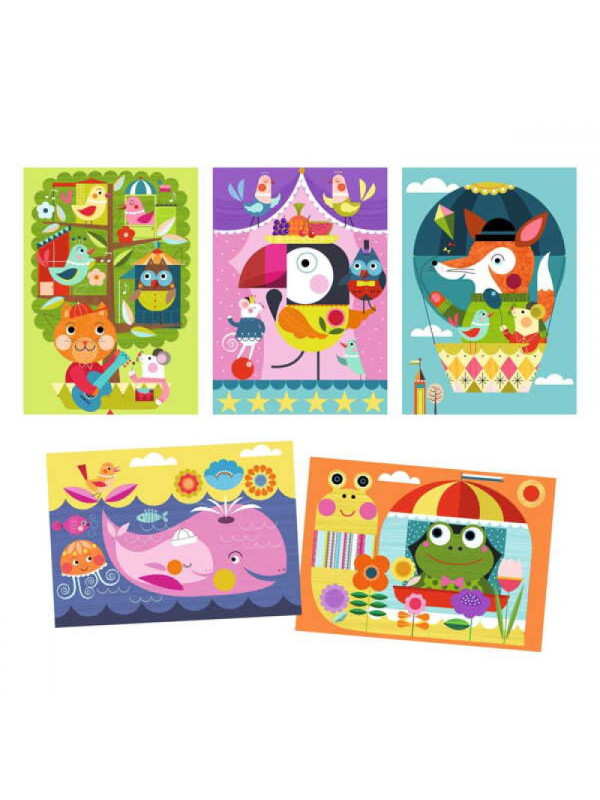 Zestaw składa się z pięciu dużych kart do wydrapywania o wymiarach 21x28 cm, przedstawiających urocze zwierzątka w różnorodnych sceneriach. Dzieci używają dołączonego drewnianego rysika z zaokrąglonymi końcówkami, aby delikatnie zdrapywać powierzchnię kart i odkrywać kolorowe obrazki. Mogą zdrapywać określone pola lub całą kartę, według własnej artystycznej wizji.