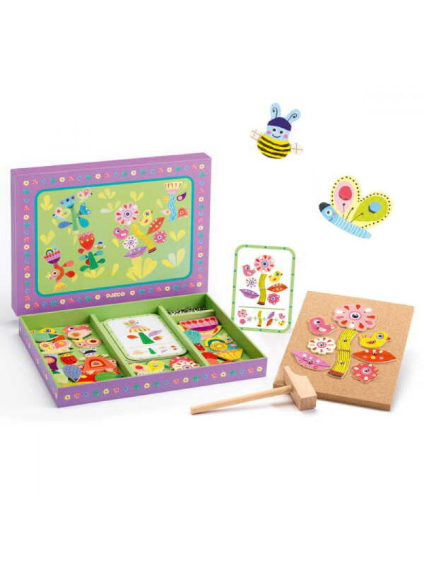 Przybijanka PROJEKTOWANIE OGRODU DJ06643 to wyjątkowy zestaw kreatywny, który pozwala każdemu dziecku poczuć się jak prawdziwy projektant ogrodów. Zestaw zawiera tablicę korkową, bezpieczne pinezki, drewniany młoteczek, karty wzorniki oraz kolorowe elementy kartonowe do tworzenia kwiatów, drzew i ptaszków.