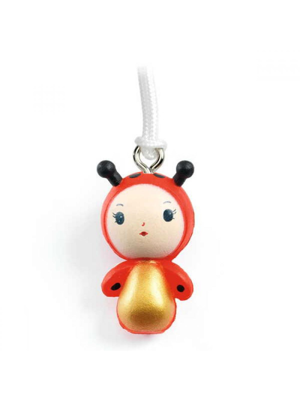 Figurka ma małą twarz z delikatnie namalowanymi oczkami i ustami, co dodaje jej uroczej ekspresji. Ciało biedronki jest czerwone z charakterystycznym złotym brzuszkiem i czarnymi kropkami. Breloczek posiada solidny biały sznurek, który umożliwia łatwe przymocowanie do plecaka, kluczy czy piórnika.