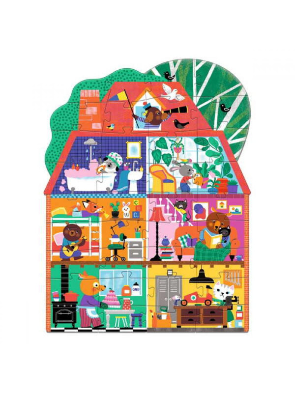 Odkryj fascynujący świat leśnych stworzeń dzięki gigantycznym puzzlom "Domek Małych Przyjaciół". Po ułożeniu tych pięknych puzzli dzieci będą mogły zaglądać do świata zwierząt, które w swoim kolorowym domku wykonują różne codzienne czynności.