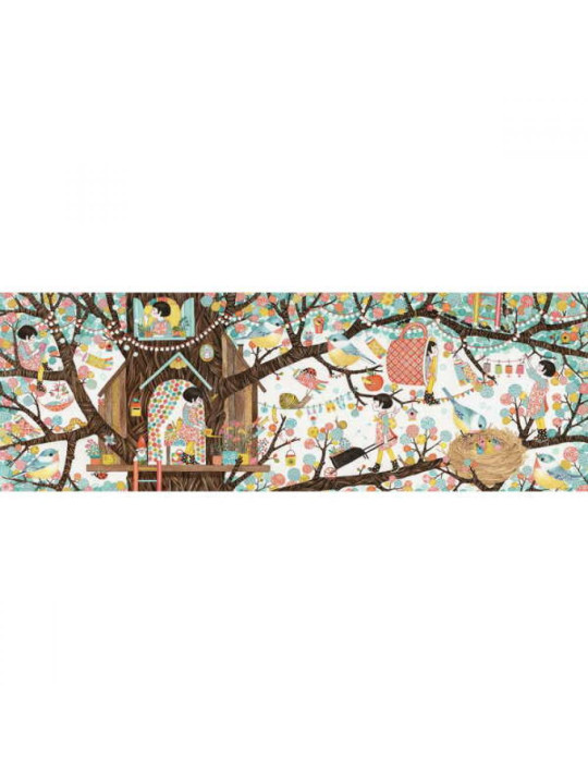Puzzle tekturowe z serii GALERIA to wyjątkowa propozycja dla dzieci, które uwielbiają kreatywne wyzwania. Ten zestaw składa się z 200 elementów, które po ułożeniu tworzą niezwykły, kolorowy obrazek przedstawiający domek na drzewie ukryty wśród kwitnących gałęzi.