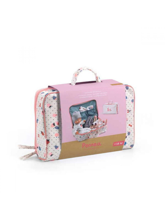 W zestawie z lalką znajduje się praktyczna walizka, ozdobiona uroczym printem w groszki i owoce. Na froncie widnieją dwa króliczki, co dodaje jej jeszcze więcej uroku. Walizka zawiera wszystkie niezbędne akcesoria do zabawy:
