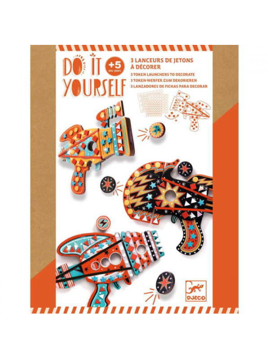 W zestawie znajdują się trzy wyrzutnie do żetonów, wykonane z grubego, certyfikowanego kartonu FSC®. Dzieci mogą krok po kroku ozdabiać rakiety, przyklejając piankowe naklejki zgodnie z oznaczeniami numerów. Gdy dekorowanie dobiegnie końca, rakiety są gotowe do zabawy - mogą strzelać żetonami!
