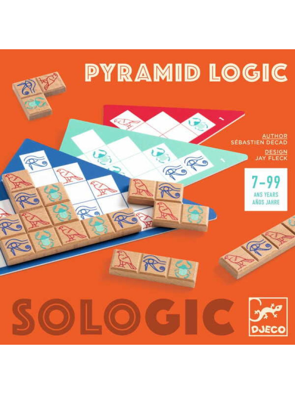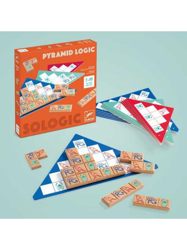 Gra logiczna PYRAMID LOGIC to wyjątkowe wyzwanie dla miłośników łamigłówek w wieku od 7 do 99 lat. Zadaniem gracza jest uzupełnienie egipskiej piramidy za pomocą 9 drewnianych kostek, z których każda ozdobiona jest unikatowymi hieroglifami. Gra polega na układaniu kostek w taki sposób, aby hieroglif znajdujący się już na piramidzie został zakryty identycznym symbolem.