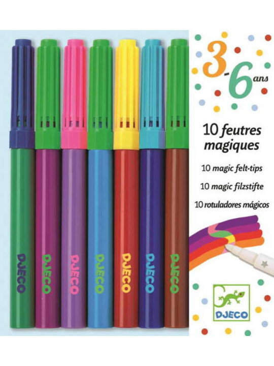 Odkryj magiczny świat kolorowania zestawem 10 Magicznych Flamastrów DJeco - to idealny prezent dla małych artystów, który przyniesie wiele radości i rozwijających zajęć.