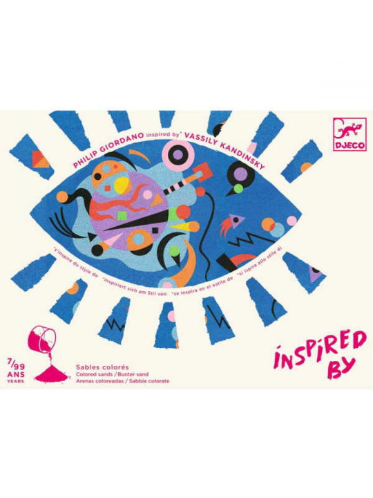 Zestaw artystyczny INSPIRACJE - SZTUKA ABSTRAKCJI DJ09382 pozwala dzieciom odkrywać i tworzyć własne abstrakcyjne dzieła sztuki. W zestawie znajdują się cztery kolorowe karty do ozdobienia o wymiarach 20 x 20 cm, dwanaście kubeczków z kolorowym piaskiem, plastikowe narzędzie oraz kolorowa instrukcja krok po kroku. Dzieci umieszczają obrazek w pudełku, a następnie używają załączonego narzędzia do odsłonięcia wcześniej naklejonych obszarów. Cały proces tworzenia jest bezpieczny i uporządkowany dzięki specjalnemu pudełku, które zapobiega rozsypywaniu się piasku.