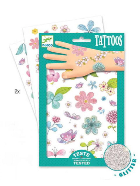 Tatuaże brokatowe KWIATY DJ09585 - zestaw kreatywny dla dzieci