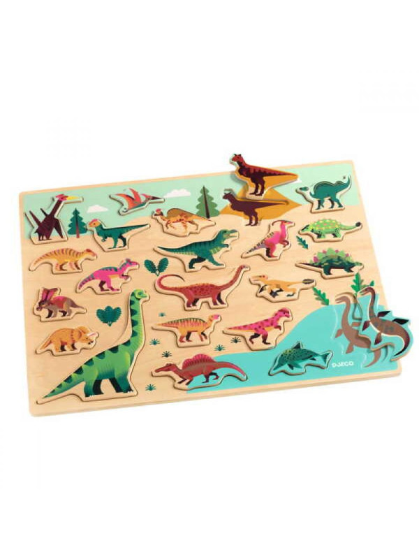 Zapewnij swojemu dziecku godziny kreatywnej zabawy i nauki z drewnianą łamigłówką Dinozaury DJ01832.