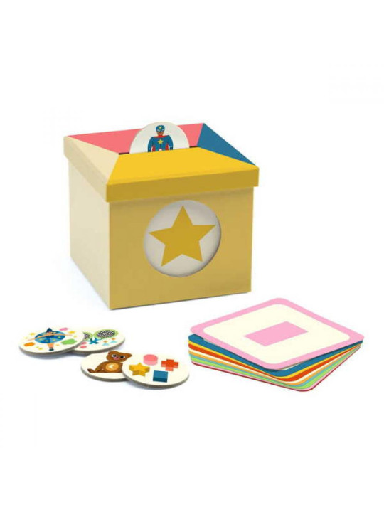 Zestaw zawiera 12 głównych kart z kształtami oraz 30 dużych żetonów, które przedstawiają różnorodne zabawki. Dodatkowym atutem jest kartonowe pudełko, które można wykorzystać jako skarbonkę, co czyni produkt wyjątkowo praktycznym.