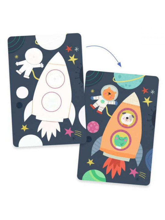 Gdy strony wyschną, dziecko może rozpocząć zabawę od początku. Arkusze schną około 15 minut, co gwarantuje długotrwałą zabawę i odkrywanie przez malucha niespodzianek, takich jak łódź podwodna, rakieta, samochód i samolot oraz postacie w tych pojazdach.