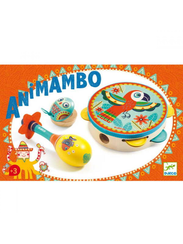 Ten zestaw trzech drewnianych instrumentów muzycznych to doskonały wybór dla małych muzyków. W skład zestawu wchodzą: żółty marakas, niebieska klekotka oraz kolorowy tamburyn ozdobiony grafiką z czerwoną papugą. Instrumenty charakteryzują się żywymi kolorami i atrakcyjnym designem, co dodatkowo zachęca dzieci do zabawy i nauki muzyki.