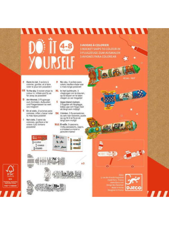 Zestaw "Zrób to Sam - Samoloty" jest wykonany z wysokiej jakości materiałów, zapewniając bezpieczną zabawę. Certyfikat FSC potwierdza, że materiały użyte do jego produkcji pochodzą ze zrównoważonych źródeł. Dzięki temu możesz być pewien, że jest to produkt przyjazny dla środowiska.