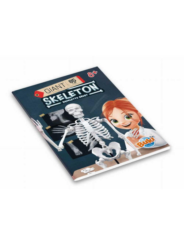 Złóż 85-centymetrowy szkielet, aby poznać anatomię człowieka. Kości mają realistyczną teksturę i kolor. Szkielet jest w pełni ruchomy i dziecko może ustawić go w dowolnej pozycji. W zestawie znajduje się również podstawa do postawienia szkieletu na biurku. Dziecko może naklejać etykiety na kości, aby je zidentyfikować i porównać ze zdjęciami rentgenowskimi. W zestawie:- kości szkieletu do złożenia- podstawa ze stojakiem- etykiety samoprzylepne- 10 zdjęć z prześlwietleniami rentgentowskimi- instrukcja z ciekawostkami Wiek: 8+ Wymiary opakowania: 30 x 13,5 x 31,7 cm Link do filmiku: https://www.youtube.com/watch?v=nOcLudSHnoY