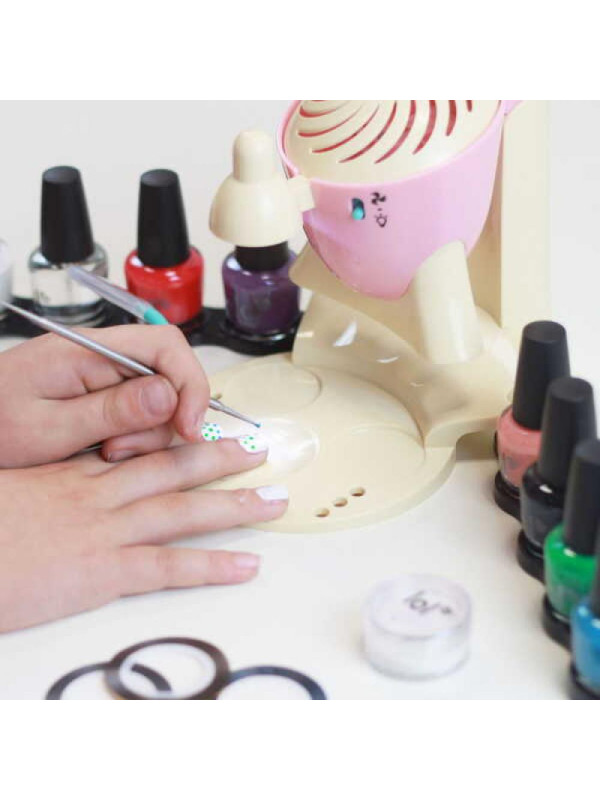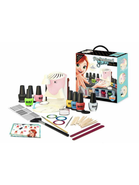 Podświetlana stacja robocza z sekcją do trzymania palca, nad którym pracujesz, sekcją do szybszego suszenia paznokci oraz lupą i lampką do precyzyjnej pracy.Wybierz swój manicure spośród 30 oferowanych wzorów, kopiując je krok po kroku, aby uzyskać profesjonalny efekt. W zestawie:- stacja robocza z uchwytami na lakiery,- 8 lakierów do paznokci,- 2 pilniki,- 1 przyrząd do robienia kropek,- 15 patyczków drewnianych,- 1 płaski pędzelek,- 1 pędzelek do zdobień,- pojemnik z brokatem,- 3 samoprzylepne taśmy,- 1 arkusz z naklejkami,- 20 dwustronnych kart z wzorami krok po kroku. Wymagane 2 baterie LR06 - nie są dołączone do zestawu. Zalecamy użycie nowych baterii wysokiej jakości, najlepiej alkalicznych, lub akumulatorów nadających się do ponownego ładowania. Link do filmiku instruktażowego: https://www.youtube.com/watch?v=-IrYoqQJrpU Wiek: +8 lat Wymiary opakowania: 28x10x28 cm