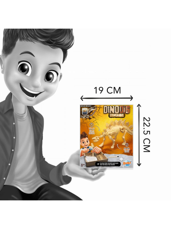 Display z 4 różnymi dinozaurami, które należy odkopać i złożyć. Do wyboru brachiozaur, tyranozaur, stegozaur, triceratops.