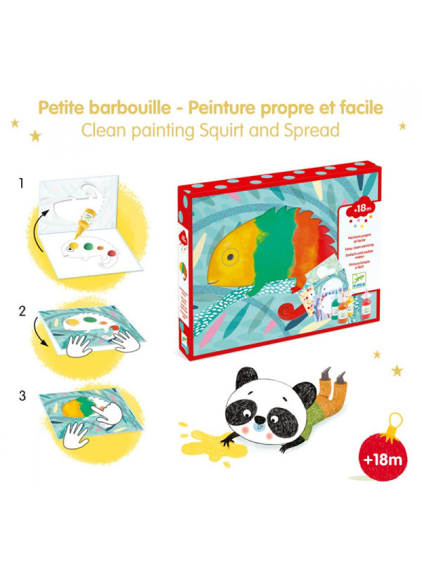 Zestaw do malowania palcami  Squirt & Spread-MALUCHY (wielokrotnego użytku ) Świetne wprowadzenie do sztuki  malowania i łączenia kolorów przy jednoczesnym ograniczeniu bałaganu! Otwórz plastikowy arkusz z ilustracją zwierzątka, wciśnij kilka kropel  farby i zamknij go ponownie. Następnie dzieci rozprowadzają farbę rączkami  nie brudząc się. Magia! Farbę można zmyć niewielką ilością wody, a  następnie malowanie można rozpocząć od nowa. Zestaw rozwija podstawowe umiejętności artystyczne, łącząc kolory i kreatywność. Zaprojektowany przez Olivię Cosneau Wiek +18 miesięcy Wymiary arkusza 28 x 21,5 cm Wymiary opakowania 29,5 x 23 x 3 cm    https://www.youtube.com/watch?v=Jx-VgIxxElM