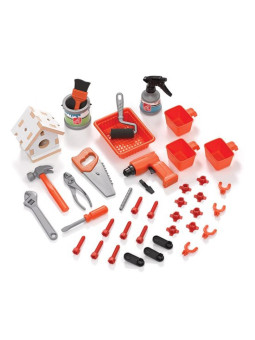 Od obróbki drewna po ciesielstwo - małe dzieci mają wszystko by budować i majsterkować w swoim pierwszym warsztacie od cenionego producenta zabawek marki Step2. W zestawie znajduje się aż 45 akcesoriów dzięki, którym można zrealizować każdy dziecięcy projekt. Zbuduj dołączony do zestawu domek dla ptaków, pomaluj go wodą za pomocą dołączonego zestawu malarskiego i zobacz jak zmienia kolor! Włącz górne światełko by oświetlić miejsce zabawy. Warsztat zawiera wiele skrytek i pojemniczków, wiertarka wydaje dźwięki jak prawdziwa, na blacie znajduje się ruchome, sprężynowe imadło - to wszystko sprawia, że to idealny zestaw dla małych budowniczych. Podczas zabawy małe dzieci rozwijają swoje umiejętności motoryczne, ponadto duże rozmiary stołu warsztatowego pozwalają, aby ćwiczyć umiejętności społeczne podczas zabawy towarzyskiej z przyjaciółmi.
