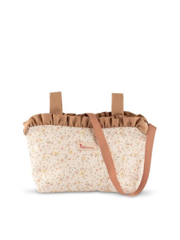 Uszyta ręcznie w Hiszpanii stylowa beżowo-kakaowa torba na akcesoria dla lalek jest idealnym dodatkiem do wózka. Z pewnością uatrakcyjnia spacery. Jej uniwersalny design pozwala na noszenie jej również jako torby na ramię. Dołączony długi kakaowy pasek zapewnia dziecku wygodę. Praktyczna, ładna i funkcjonalna, świetnie nadaje się do przechowywania wszystkich akcesoriów do zabawy lalkami. W zestawie prezentowy woreczek tiulowy.