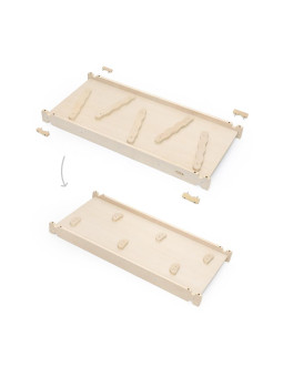 - Ściankę z otworami wspinaczkowymi, która angażuje inne partie mięśni i uczy planowania ruchów. Dzięki niemu dziecko trenuje zmysł równowagi i poprawia koordynację, a wszystko to w bezpiecznym, domowym zaciszu.