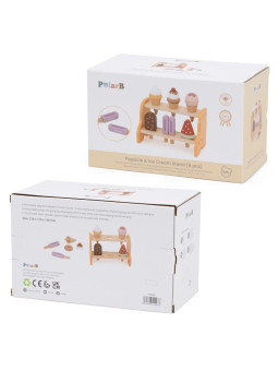 Ten uroczy zestaw zawiera 6 kolorowych lodów od marki VIGA– 3 rożki i 3 lody na patyku – ozdobione kultowymi wzorami, które zachwycą każde dziecko. Dwuwarstwowy, drewniany stojak pozwala eksponować lody i utrzymać porządek podczas zabawy. Wyjmowane elementy stymulują małą motorykę i rozwijają zabawę dotykową. Idealny do kreatywnego odgrywania ról – np. własnego straganu z lodami!
