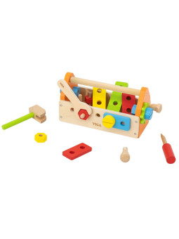 Drewniana Skrzynka z Narzędziami marki Viga z kolekcji PolarB zapewni wspaniałą zabawę każdemu małemu majsterkowiczowi. Zestaw zawiera młotek, klucz, śrubokręt, 4 pary śrub i nakrętek, kołek, 2 koła zębate i 2 panele z otworami. Dzieci mogą poznawać różne narzędzia i rozwijać umiejętności obracania, uderzania i dopasowywania. Zabawa w majsterkowanie wspomoże rozwój zdolności manualnych, zaciekawi i pobudzi wyobraźnię dziecka.
