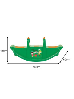 Dwumiejscowy zielony bujak marki Woopie zapewnia nie tylko mnóstwo radości, ale i wspiera rozwój fizyczny maluchów. Przeznaczony dla 1–2 dzieci, idealnie sprawdzi się zarówno w domu, jak i w ogrodzie. Jego ergonomiczny kształt, wygodne siedziska oraz uchwyty do trzymania gwarantują bezpieczną i komfortową zabawę przez długi czas. Produkt wykonano z trwałego, odpornego na warunki atmosferyczne tworzywa, które doskonale znosi intensywną eksploatację. To świetna alternatywa dla klasycznych huśtawek i bujaków – dziecko może się bawić samodzielnie lub w parze, ucząc się przy tym współpracy i równowagi. Lekka konstrukcja umożliwia łatwe przenoszenie produktu w dowolne miejsce. Intensywny zielony kolor w połączeniu z żółtymi akcentami oraz wesołym nadrukiem na froncie przyciągają uwagę dzieci i zachęcają do aktywnej zabawy! Bujanie się na tej huśtawce to nie tylko świetna rozrywka, ale i forma naturalnej gimnastyki, która pozytywnie wpływa na rozwój motoryki dużej, równowagi oraz koordynacji ruchowej.