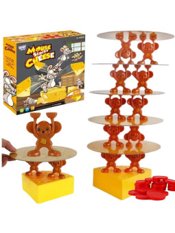 - Serowe plastry można układać pod dowolnym kątem, byle myszki były na swoich miejscach. Z każdym kolejnym ruchem wieża staje się coraz bardziej rozchwiana. Czasami wystarczy jeden niepewny ruch, a cała konstrukcja runie!